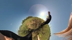 The video demonstrates how Founder Effect looks, but can't mimic the interactive part of it. The piece is viewed in 360° with an app inside a VR headset. Brief animations are triggered by the viewer's gaze—in other words, when a viewer looks in a certain direction, the animation begins.
